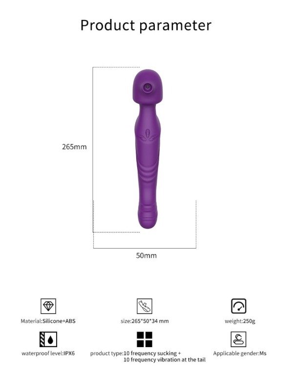 • 2 botones. 10 modos diferentes de vibración.10 modos de succión..